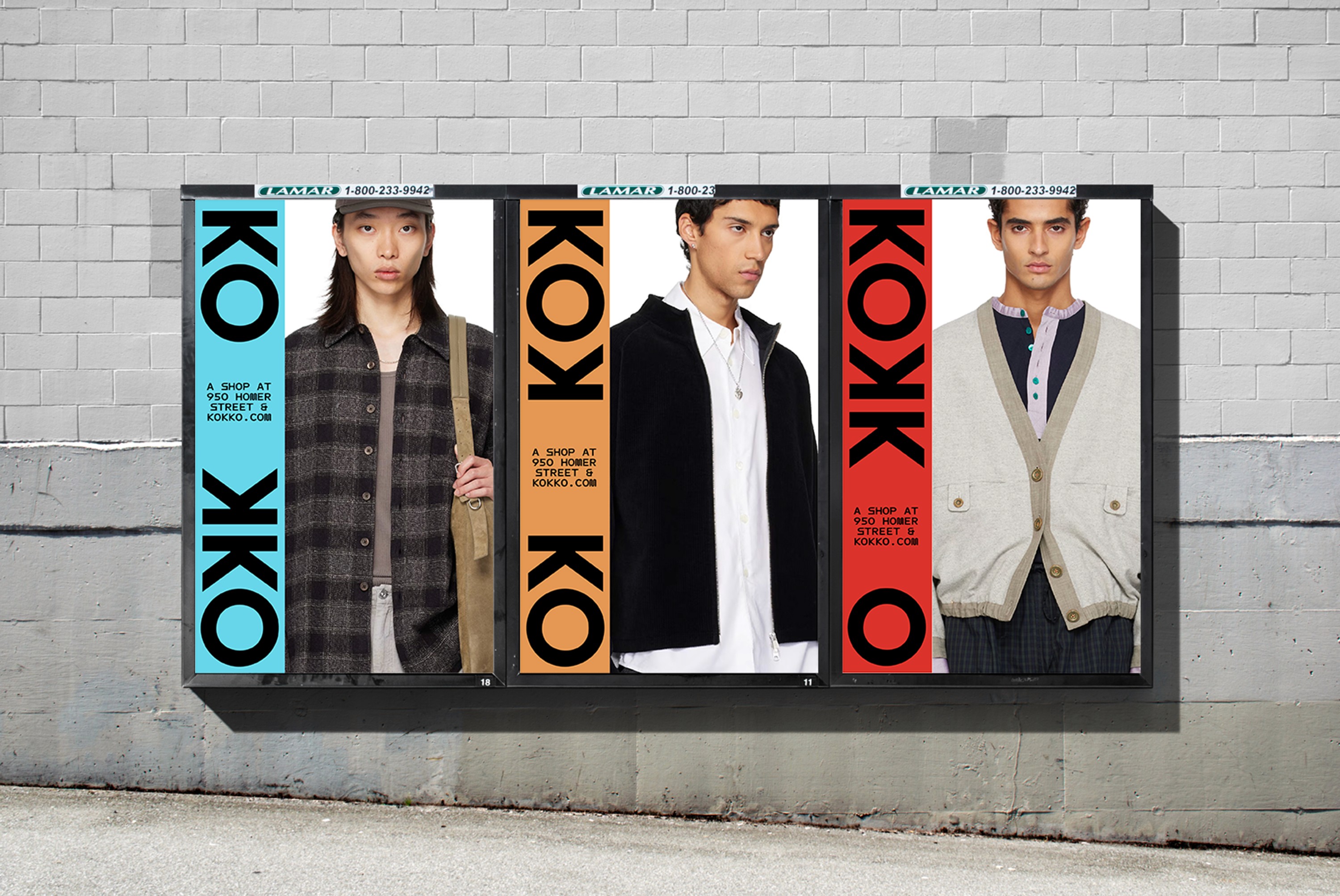 Unlike its parent brand’s expansive scale and museum-like elegance, KOKKO operates on a smaller, sharper spatial and editorial footprint — designed to reflect a more youthful, directional attitude. The identity builds on this distinction while maintaining a visual affinity with Leisure Center through shared principles of restraint, clarity, and structural elegance.